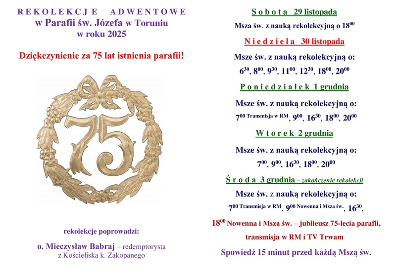 Podczas każdej Mszy św. oraz w piątki w godz. 15.00-18.00