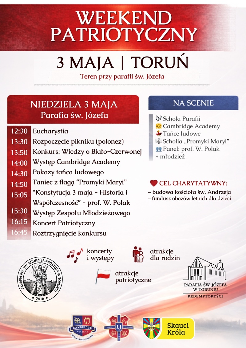 Dwie parafie, jedna wspólnota i mnóstwo radości! Serdecznie zapraszamy na wyjątkowe świętowanie 2 i 3 maja. Czeka na Was bogaty program, a wszystko to w szczytnym celu!