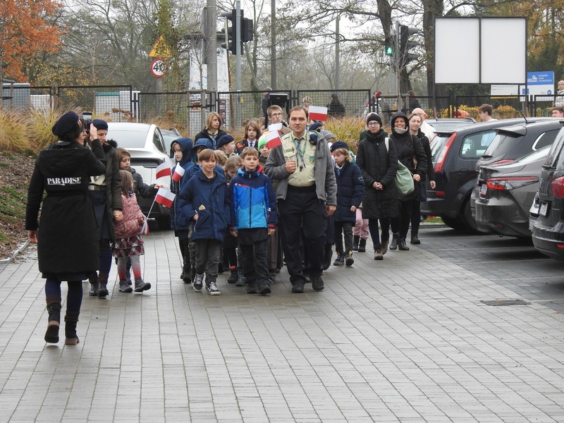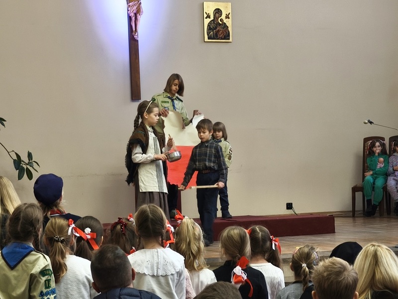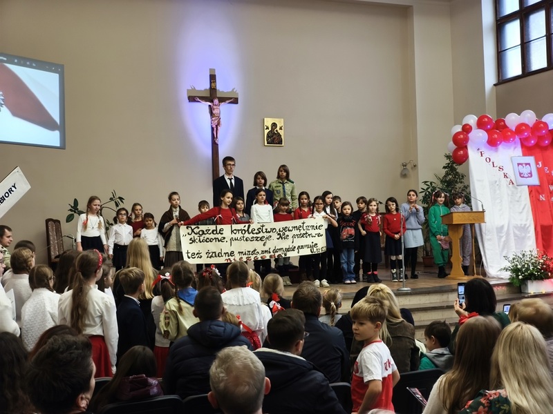 Wydarzenie rozpoczęło się uroczystymi Mszami Świętymi. Następnie w radosnym Orszaku Patriotycznym, prowadzonym przez Scholę Katedralną, przeszliśmy do Kaplicy Szkolnej na część artystyczną. Mogliśmy podziwiać inscenizacje Skautów Króla, posłuchać młodzieży z Cambridge Academy i Liceum Jagiellońskiego oraz przeżyć głębokie chwile podczas Monodramu „Legiony Piłsudskiego”.